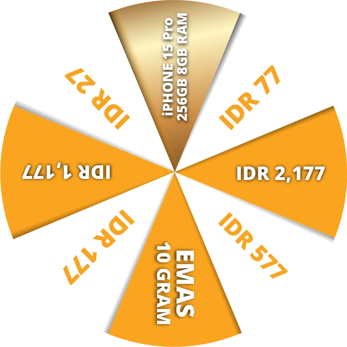 Jika member hanya mencapai IDR 25,000, maka member hanya akan mendapatkan 10 Tiket Reguler Wheel Spin.
